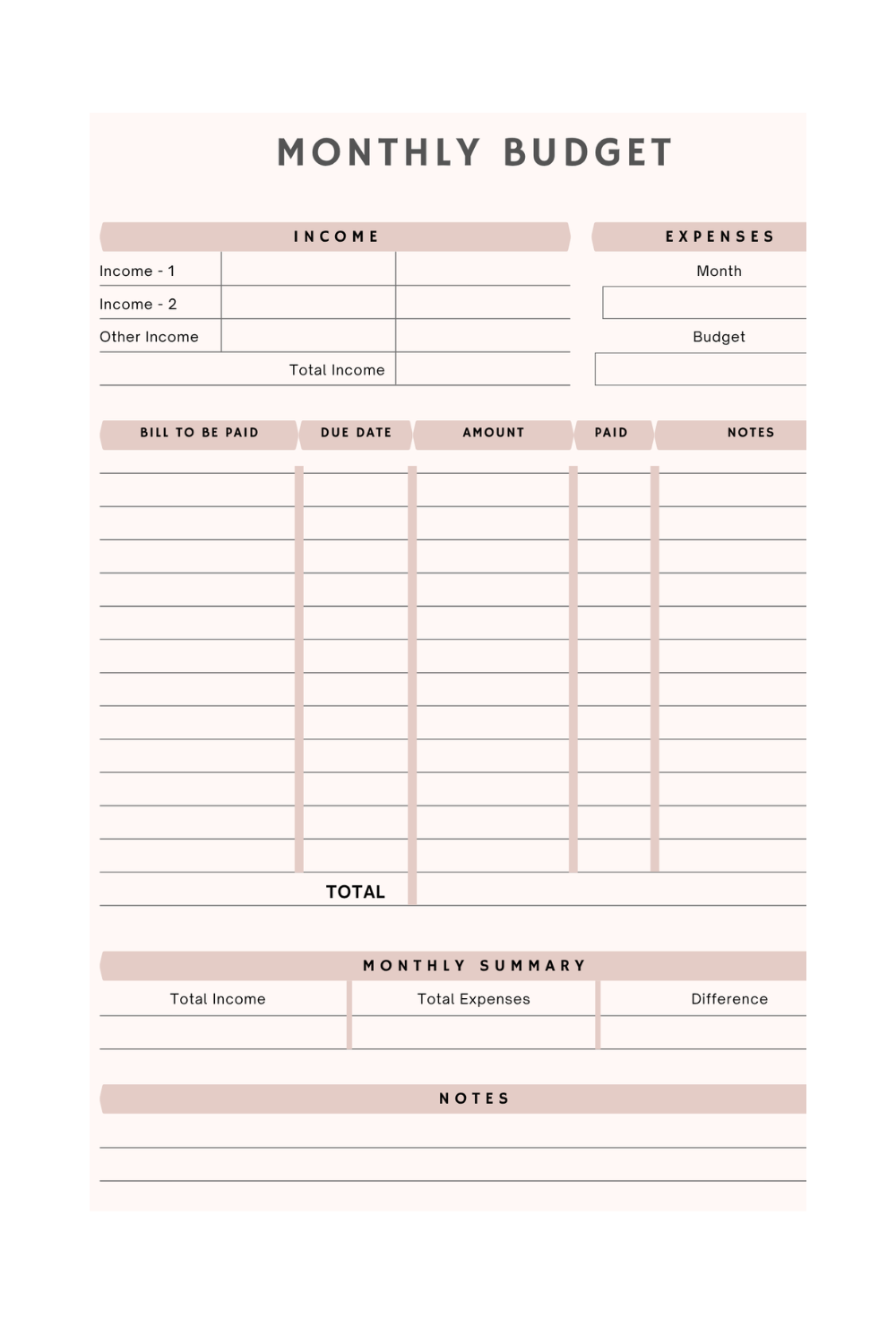 Monthly budget planner sheets to track spending and plan ahead
